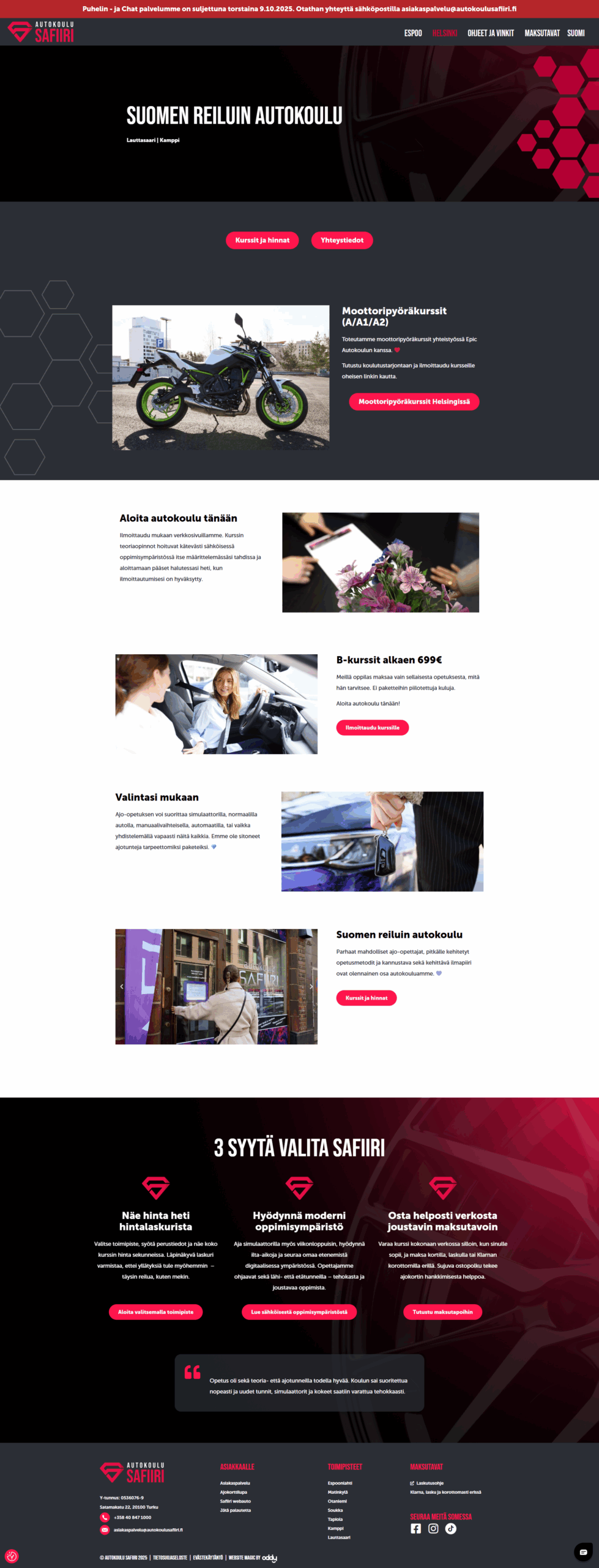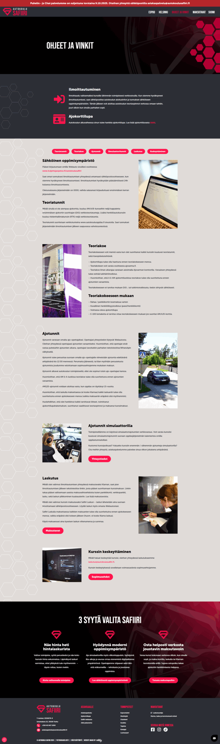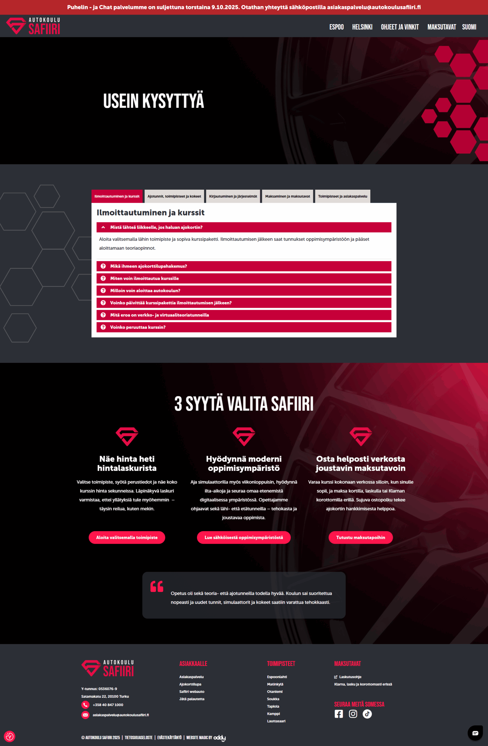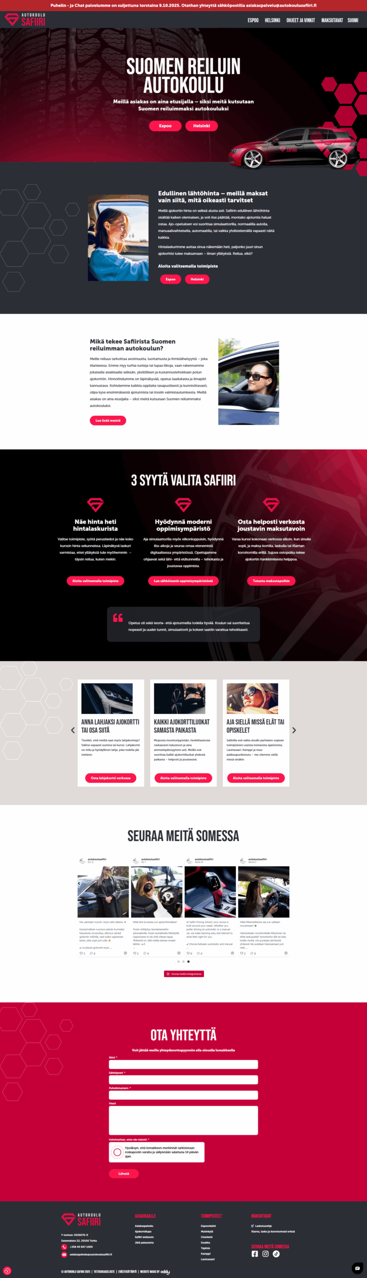 Autokoulu Safiiri haluaa kertoa uusilla verkkosivuillaan miksi he ovat ”Suomen reiluin autokoulu.” Palveluiden hinnoittelu on selkeää ja läpinäkyvää sekä oppilas pystyy itse vaikuttamaan ajokorttinsa hankintahintaan valitsemalla vain tarvitsemansa palvelut.