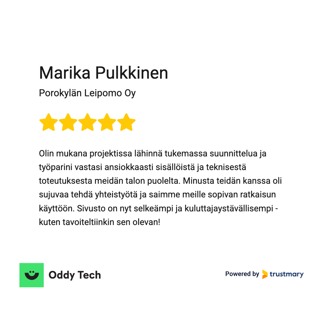 Oddy pääsi suunnittelemaan ja toteuttamaan täysin uudistetut verkkosivut tiiviissä yhteistyössä asiakkaan kanssa. Olemme molemmat lopputuloksesta erittäin ylpeitä!