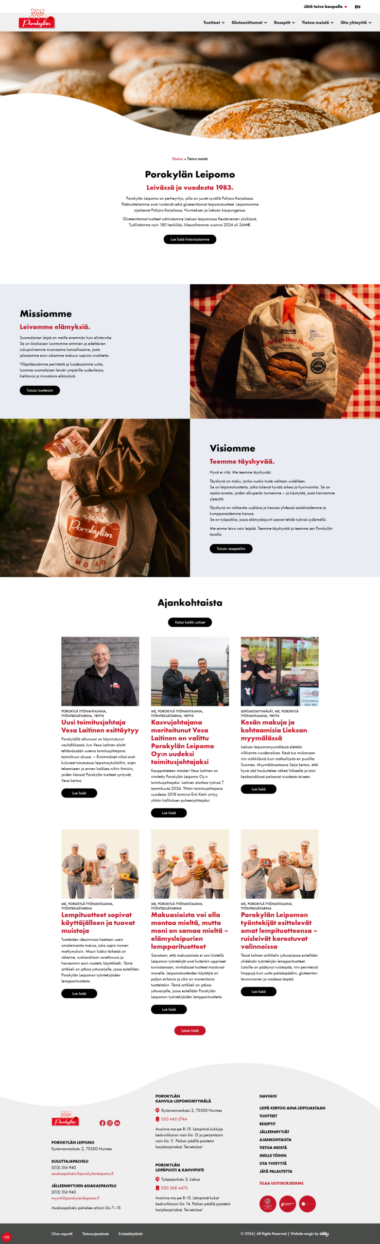 Porokylän Leipomo halusi uudistaa verkkosivuston kokonaisvaltaisesti, jotta se palvelisi asiakkaita, jälleenmyyjiä ja muita sidosryhmiä entistä paremmin.