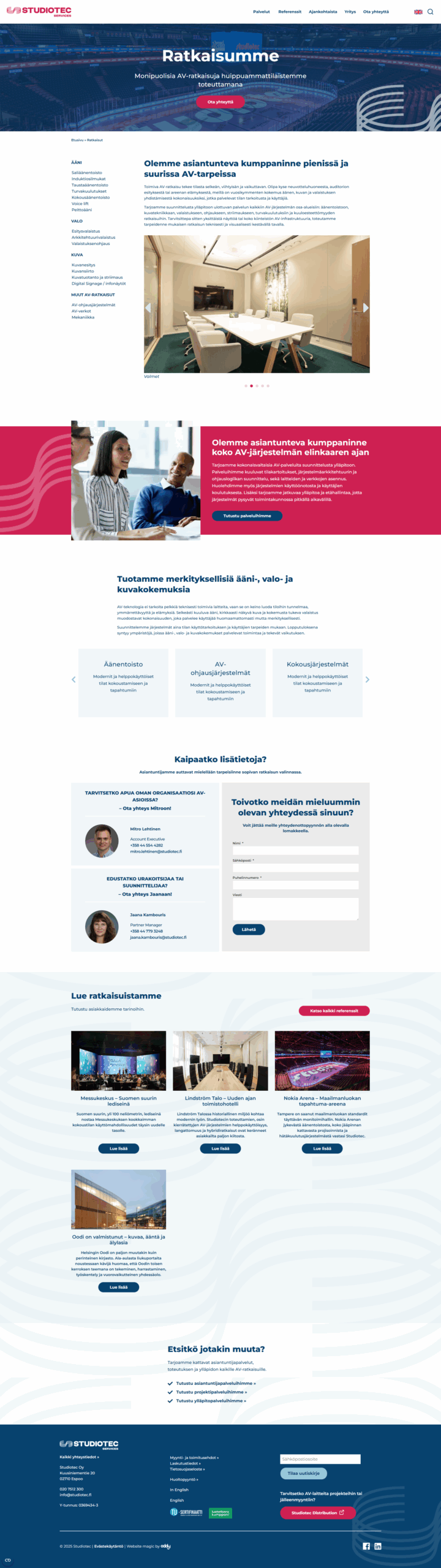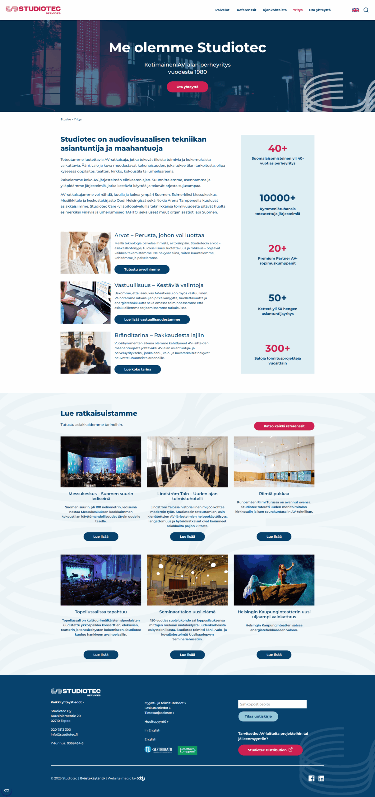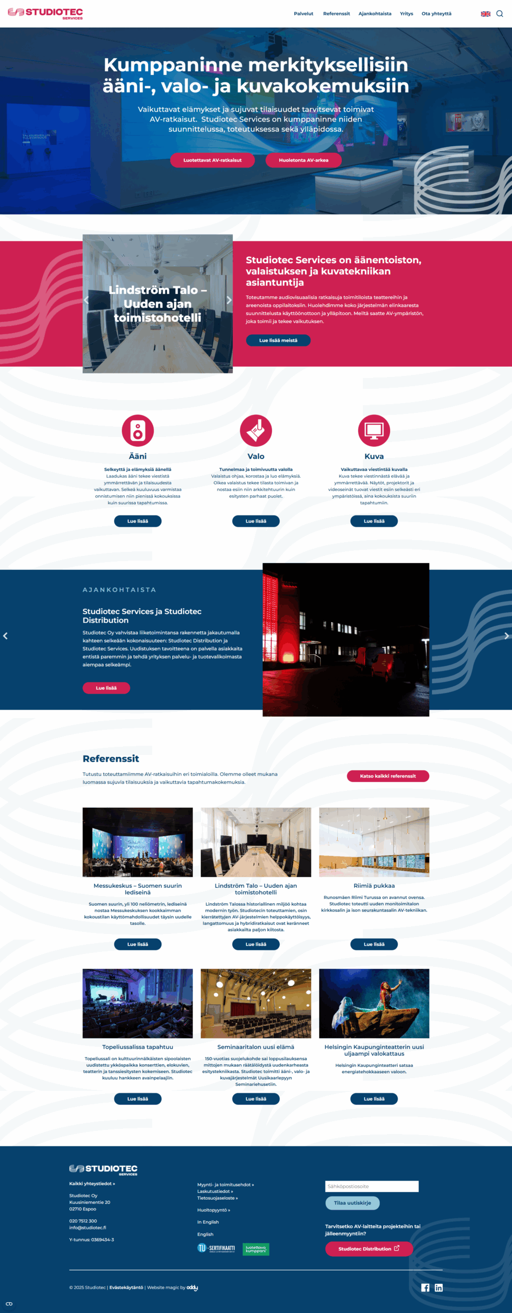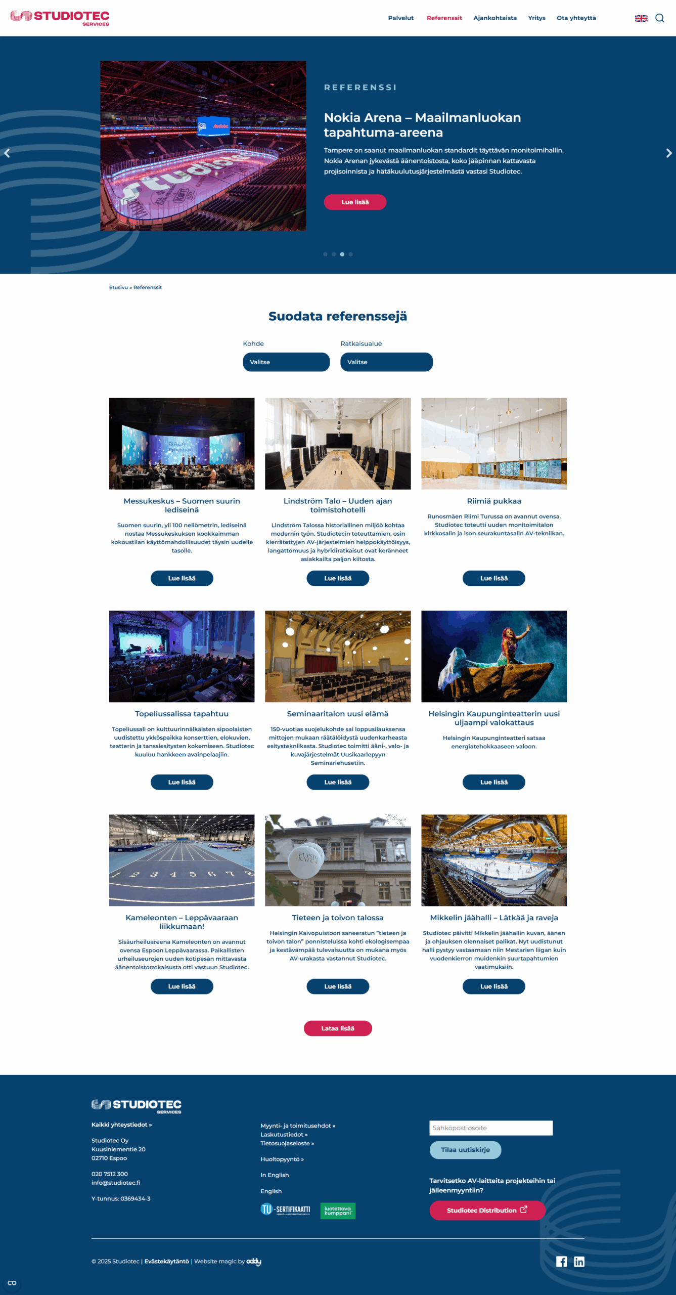 Oddy pääsi uudistamaan Studiotecin verkkosivut, joissa painopiste oli palveluiden, käyttökohteiden ja ennen kaikkea toteutettujen projektien esiin nostamisessa. Uudessa rakenteessa panostettiin selkeyteen, visuaalisuuteen ja sisältöihin, jotka konkretisoivat, mitä kaikkea Studiotec oikeasti tekee – ja minkälaista arvoa se asiakkailleen tuottaa.