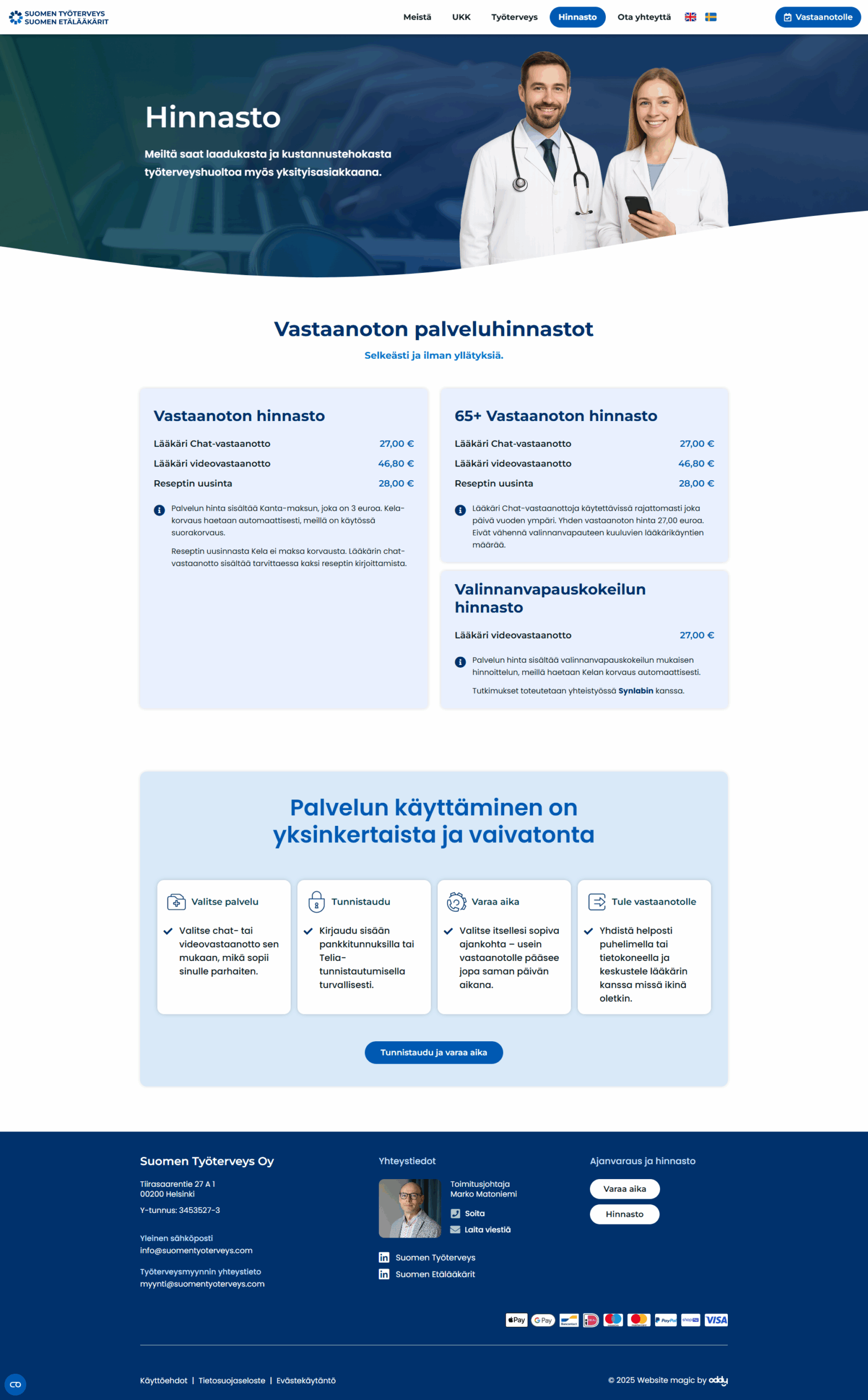 Seuraavassa vaiheessa palveluun avataan työterveyspalvelut, jotka tulevat mahdollistamaan vaivattoman ja kustannustehokkaan hoitoonpääsyn. Työntekijälle helppo ja työnantajalle läpinäkyvä sekä kustannustehokas.
