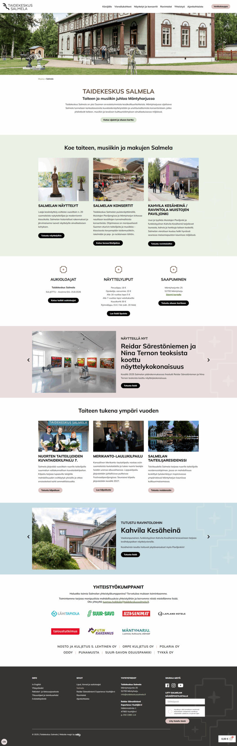 Kävijöiden odotukset ovat vuosien varrella kasvaneet – ja Salmela halusi vastata niihin myös digitaalisesti. Oddy toteutti verkkosivu- ja verkkokauppauudistuksen, jonka tavoitteena oli tarjota ajankohtainen tieto helposti, mahdollistaa pääsylippujen sujuva ostaminen ja tuoda esiin kasvanut palvelutarjonta kiinnostavasti ja visuaalisesti houkuttelevalla tavalla.